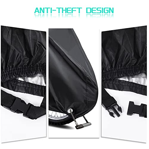 Trou de verrouillage et boucle : la housse de moto étanche a deux trous sur le devant et une boucle à l’arrière à travers laquelle vous pouvez enfiler votre serrure de moto, a fait en sorte que votre moto soit plus sûre même par temps venteux et protège contre le vol.