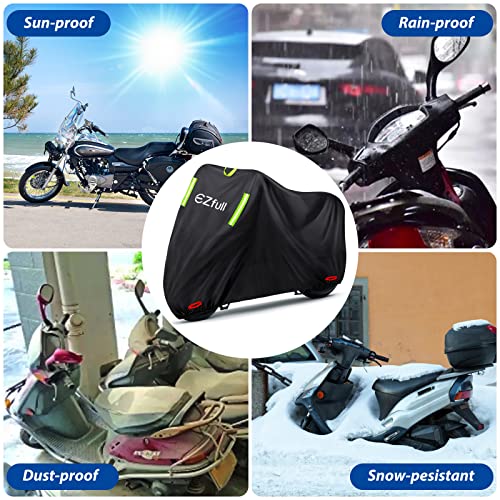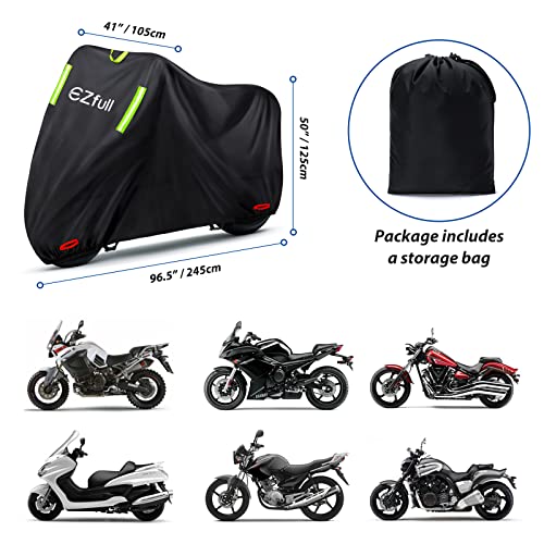 Housse Protection pour Moto, Ezfull Couverture Polyester 210D Résistant aux déjections d’oiseaux, à l’eau, à la Poussière/Neige/Pluie, au Vent, UV (245 * 105 * 125cm) Couleur: Noir
