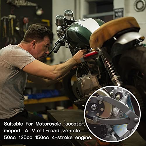 ☞Facile à utiliser : la clé d’embrayage de moto est très simple et pratique à utiliser. Il vous suffit d’ajuster le bras à la bonne taille avec le boulon de clé d’embrayage de la moto, puis d’insérer la goupille sur le dessus de la clé dans la fente correspondante sur le volant.