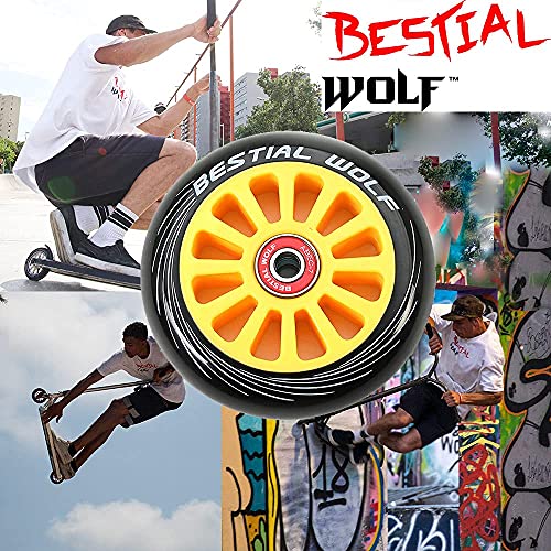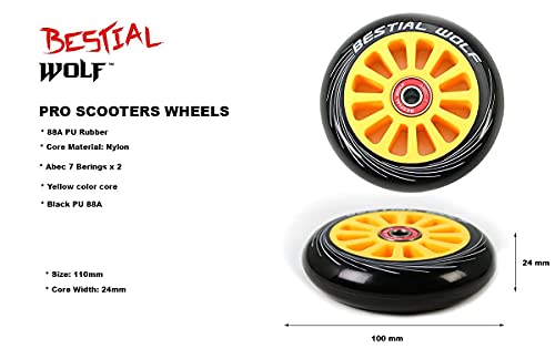 Specification: Bestial Wolf Pilot XX2 Pack de deux roues d’origine Diamètre 100 mm pour scooter Freestyle (Jaune)